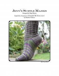 Jenn’s socks, designed by Meg Warren (of March Hare dying and the Defarge books) are an easy knit which get you a stylish pair of firm, warm socks. Knit in Riin Gill’s Happy Fuzzy Yarn (Corrie Sock in Purple Kale) they will give you quiet confidence in your Clogs or Crocks while you go about your daily grind.